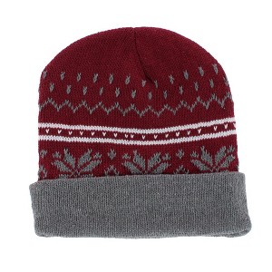 CTM Men's Snowflake Pattern Winter Knit Beanie Hat