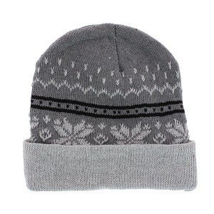 CTM Men's Snowflake Pattern Winter Knit Beanie Hat, Light Gray