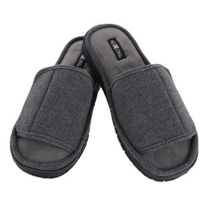 Adjustable Fit with Hook & Loop Closure - These men's open-toe slippers feature a convenient hook and loop strap, allowing for a customized fit. Ideal for those needing extra adjustability, they provide a secure, snug feel without pressure on sensitive feet.