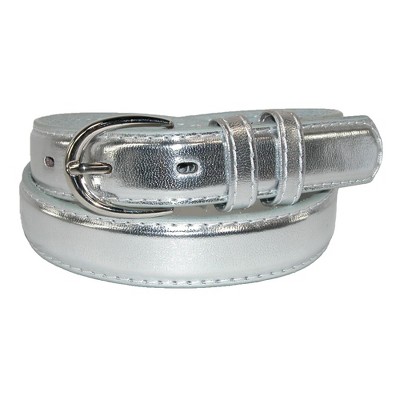 A classic belt for your little one, this is a great style for both casual and dress outfits. A round silver buckle feeds into two keepers. Fits 18 - 22 inches waist size. Made of Genuine Leather