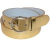 This classic bridle belt comes in many traditional and fashion colors to go with any outfit. Measuring 1 3/8 inches wide, it features a satin silver finish buckle. Made of Genuine Leather