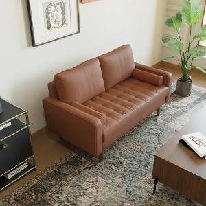 Tree City- 58" Upholstered Mid-Century Modern Faux Leather Square Arm Sofa Loveseat