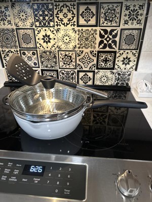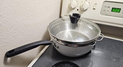 I bought this as a gift for my husband. I’ve used it more than him and will gladly claim it as my own. It does everything. Steams vegetables perfectly. Fries without the oil and simmers without sticking.