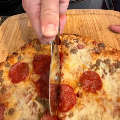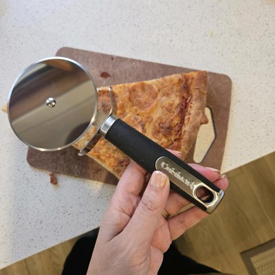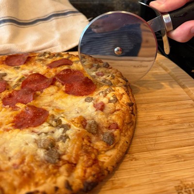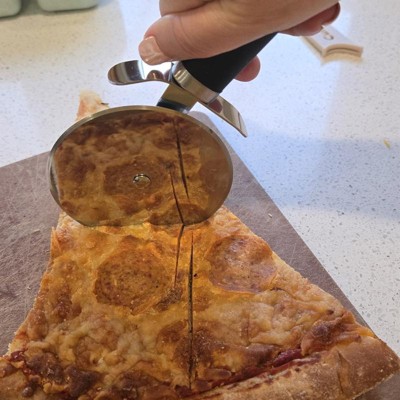 [This review was collected as part of a promotion.] This is a very sturdy pizza cutter and it cuts really well. I have purchased less expensive pizza cutter and the handles have broken many times and I’ve had to repeatedly replace them. This has a much bigger blade and the handle seems much sturdy and less likely to break than previous ones that I have owned.