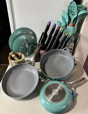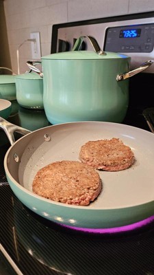 [This review was collected as part of a promotion.] I really love this pot and pan set. I have used them multiple times and nothing at all sticks. Nothing stays even cooking spray no residue is left behind. The food doesn’t stick while cooking. Everything glides nicely. The cook is even and great. I have made a variety of meals in each pot and everything exceeded my expectations. The included lid holder is a nice addition for space saving storage. And the included utensils are a nice addition. Overall this is a great set of ceramic pans.