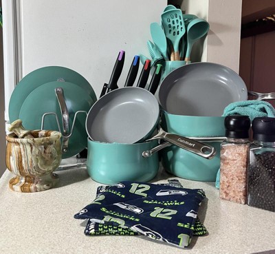 [This review was collected as part of a promotion.] These pots and pans are absolutely gorgeous! I love the color so much. They are nonstick and so easy to cook in. The top organizer is definitely a plus and great space saver. The utensils are great to not scratch the pans. You should try these if you haven't yet. I will never use anything else.