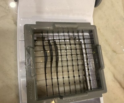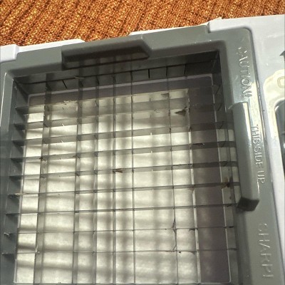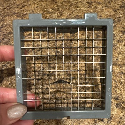 Purchased to chop a bunch of onions to be frozen. Used the small blade to chop one small onion cut in half and a blade bent making the small blade unusable. Did manage to cut 10 quart bags full with the large one before we called it good for the night. Will be returning it as I was excited for the small blade for making fresh pico quickly or taco nights. Instructions are very minimal and do not give much instruction on how to prepare the veggies for chopping. And to think it claims to be able to cut potatoes up to 4 inches long.