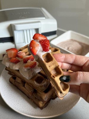 [This review was collected as part of a promotion.] There is so much to love about this waffle maker. It is so easy to use and delivers perfectly cooked waffles every time. Not to mention it couldn't be easier to clean with its non-stick finish. It's also really compact and stores so easily in my kitchen. Stoked to have this appliance on hand to spruce up my breakfast options - the 'dipper' shape makes these so fun to eat, especially for the kiddies!