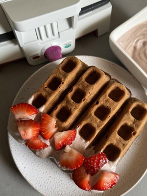 I love this product! All you need to do is pour in the batter, close the lid and wait for the green light to flash, and you’ve made some delicious waffles!!!
