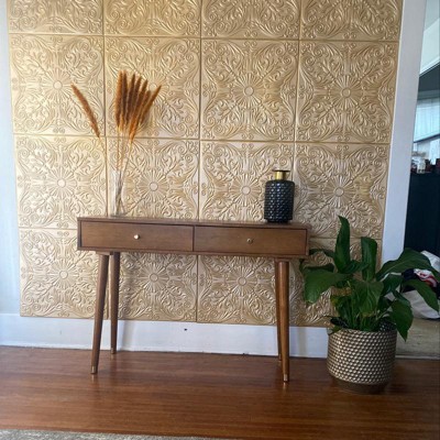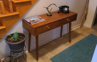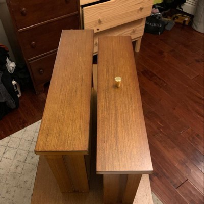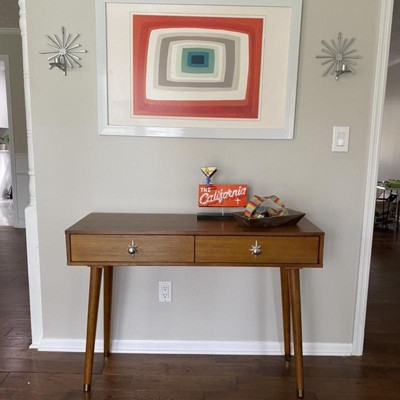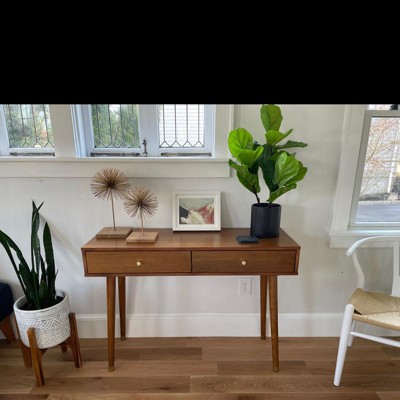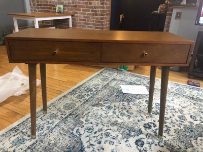 OSP Home Furnishings Cupertino Console Table Light Walnut: Mid-Century Modern, 2 Drawers, Wood Frame