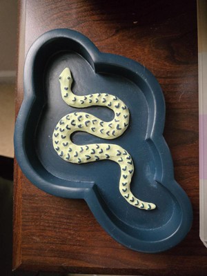This snake decore tray is so cute and cool because it glows in the dark. I keep in on my bedside table to put my earrings in at night. I'm into dopamine decore and this snake tray makes me feel so happy. I love that it glows bright in the dark. I also love the snake!