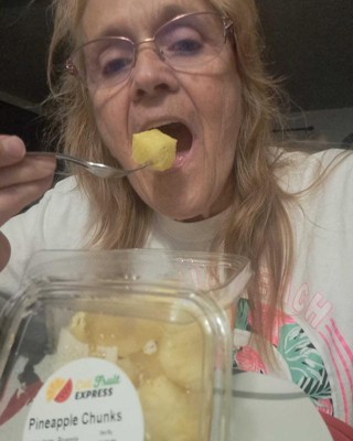 [This review was collected as part of a promotion.] I love the Express Pineapple Chuncks from Target. I payed 5.99 and I don't have the mess of cleaning and cutting up a pineapple. Plus I can enjoy it right away. What can be better then that. It tastes wonderful and I can add it to my salads and jello so the hole family can enjoy it. I totally recommend this product to anyone and everyone. I won't be returning this one forsure, it's already gone. I received an incentive to write this review.