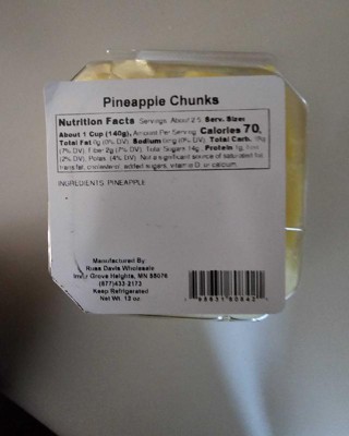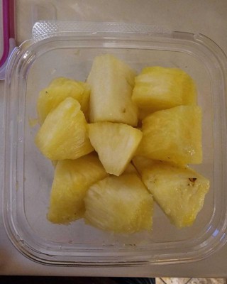 [This review was collected as part of a promotion.] This is a large container of freshly cut pineapple. This is a fruit I love to enjoy, but it takes so much effort to cut the skin off at home. At first I was skeptical of the flavor due to the pale color, but this was very ripe pineapple with the perfect sweet taste. It lasted for several days in my refrigerator also. I received an incentive to write this review.