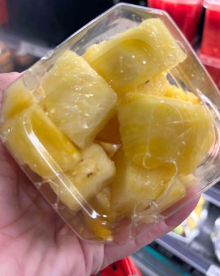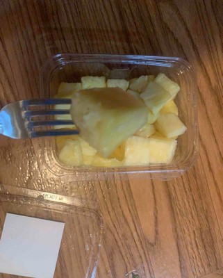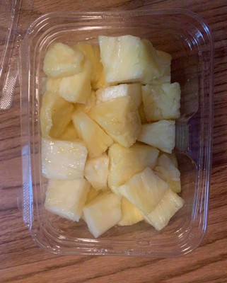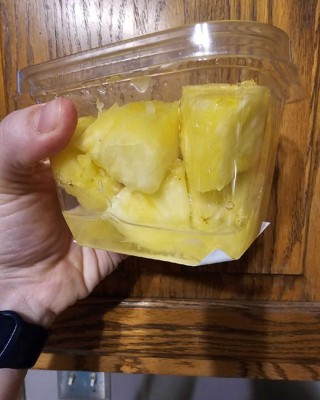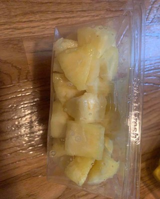[This review was collected as part of a promotion.] This pre cut pineapple was super good and juicy. I don't think it was worth the price since there really isn't a lot of pineapple but it's worth it if you don't want to spend a lot of time cutting and coreing a whole pineapple but this definitely doesn't last very long. My daughter and I ate it in one sitting. I received an incentive to write this review.