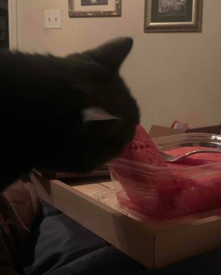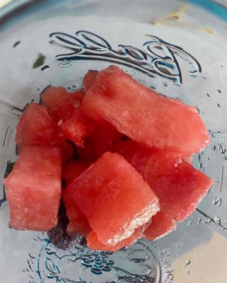 [This review was collected as part of a promotion.] This is a medium sized container of pre cut watermelon. I like that you save time and don’t have the mess of cutting the melon yourself. This was a good amount of watermelon for a few snacks or meal. I found the melon to be very ripe and flavorful- even kitty wanted to eat it! I received an incentive to write this review.