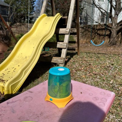 Based on the name “cyclone” I was expecting many more bubbles than this created. honestly, I don’t know if it was worth putting three batteries into it for it to run. the type of bubble machine that is sideways and blows out, the side makes a little more sense. this one was a bit lackluster, however it was very cheap so maybe you just get what you pay for.