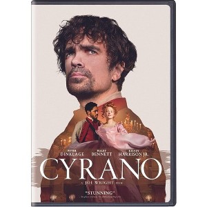 In 17th-century France, erudite swordsman Cyrano de Bergerac (Peter Dinklage) was as able to take an opponent apart with wit as with rapier. Too self-conscious to express his love to the beautiful Roxanne (Haley Bennett), he made the handsome if vacant soldier Christian (Kelvin Harrison, Jr.) the vessel of his sentiments toward her. Erica Schmidt adapted her stage musical of the Rostand romance for the screen; Joe Wright directs. Ben Mendelsohn, Bashir Salahuddin co-star. 124 min. Widescreen; Soundtrack: English.