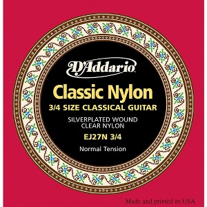 EJ27 classical guitar strings are great for beginners and students. The nylon string set contains 3 clear trebles and 3 silver-plated, copper-wound basses for warm, long lasting tone. These normal-tension replacement strings are optimized for 3/4 scale classical guitars. Gauges: 28-32-40-29-35-43.