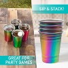 D'Eco Unbreakable Holographic Stainless Steel Party Cups (16 oz, 4 Pk) Drinking Glasses for Games- Great for Entertaining, College, Parties, Birthdays