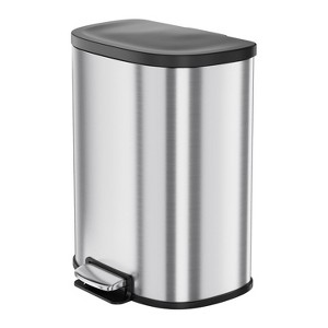 D Shape Kitchen Trash Can 50L/13.2 Gal,Smudge Resistant Step-On Garbage Can with Lid,Stainless Steel Trash Bin with Removable Buckets