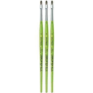 da Vinci FIT Synthetics Student Brush, Synthetic, Acrylic & Tempera, Filbert, Series 375, Size 4, Pack of 3 | Thanks to a specifically developed, flexible, grey synthetic fiber we have created a hobby and school painting brush, which fascinates not only by its interesting look but also by its attractive price. This innovative product offers better performance than the traditional school brush with natural hair when it comes to stroke control and color absorbing capacity. The brush features a green, matte handle with seamless, rust-proof aluminum ferrules. Made in Germany. 100% Vegan. Sold as a pack of 3.