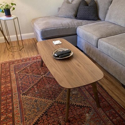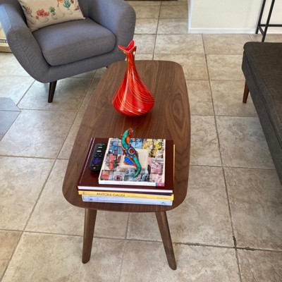 Such a beautiful table. I wanted a simple coffee table, walnut wood and without extra shelving underneath and this was perfect! A little higher than most coffee tables. Extremely study and so fast to put together.