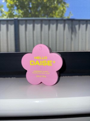 hello daise raspberry & mint fragrance body mist - alcohol denat., aqua (water), parfum (fragrance), propylene glycol, peg-40 hydrogenated castor oil, limonene, hexyl cinnamal, linalool, bht, citronellol, dipropylene glycol.
