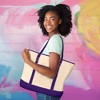 This tote is incredibly versatile, making it suitable for a wide range of activities. Heading to the farmer’s market? Load up on fresh produce and artisanal goods without worrying about space. Planning a beach day? Pack your towels, sunscreen, and snacks all in one bag. Need a reliable work bag? This tote easily accommodates your laptop, notebooks, and lunch. And for those weekend getaways, this tote doubles as the perfect travel bag, holding everything from clothes to toiletries. It’s also a great companion for gym sessions, where you can stash your workout gear, water bottle, and shoes with room to spare.Comes in color: Purple