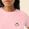Dalix Smile Face Embroidered Soft Cotton Short Sleeve T Shirt Womens - 1 of 4