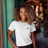 The Bow design adds a touch of charm and personality, tying everything together without saying a word. Upgrade your everyday wardrobe with our women’s jersey tee, designed to bring a balance of style and ease to your look. Featuring a classic crew neck, short sleeves, and a relaxed fit, this t-shirt offers a versatile and modern silhouette that effortlessly complements any outfit. Crafted from 100 percent Airlume cotton, the fabric feels incredibly soft, making it a go-to choice for all-day wear, whether you're on the move or relaxing at home. This jersey tee is perfect for a range of activities, from casual outings and running errands to layering under a blazer for a polished yet comfortable vibe. The breathable fabric ensures you stay cool during summer walks, while the relaxed fit offers freedom of movement for yoga sessions or light workouts. It pairs beautifully with your favorite jeans for brunch with friends, adds a laid-back charm to evening strolls, and works as a cozy option for travel days." Womens adult fit. Comes in color: White. Size XX-Large