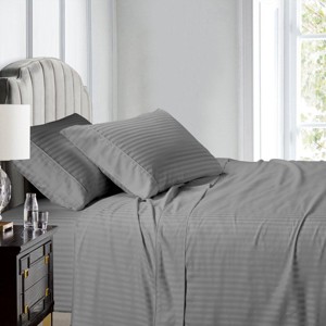 Damask Striped 600 Thread Count Sheet Set Gray Queen