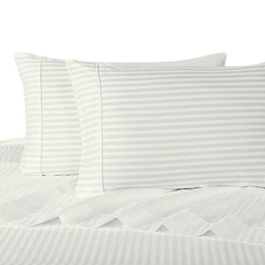 Damask Striped 600 Thread Count Sheet Set White Queen