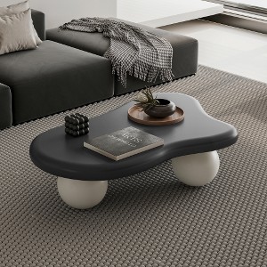 ACEPANO 40 in. W Modern MDF Cloud-Shaped Coffee Table with Three Ball Legs & Black Top for Living Room-White