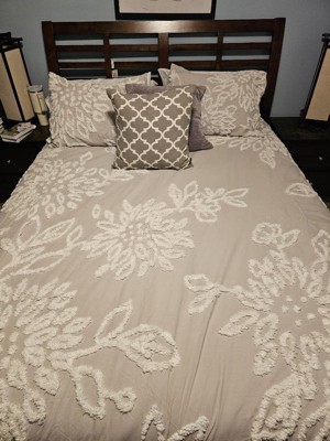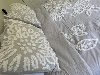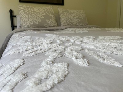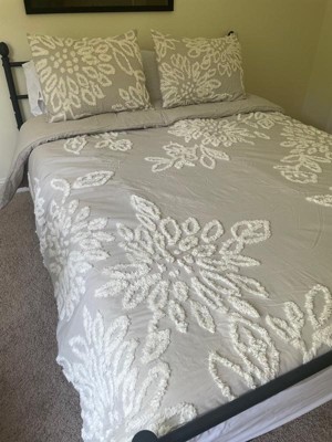 3pc Full/Queen Danica Tufted Chenille Floral Comforter Set Gray/White - Madison Park