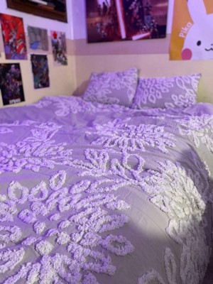 [This review was collected as part of a promotion.] First I want to say that I can appreciate the fact that this comforter and pillow covers are cotton. The fabric is nice and breathable enough to use during the Texas summer/fall. My only major complaint is that the fuzzy designs shed like crazy! I’ve got little white fuzz all over my blanket and rug and I can’t sit on the bed with anything black on. I’m afraid that washing this set will only make it worse.