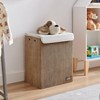 - Corduroy textured fabric adds nostalgic flair to this unique hamper