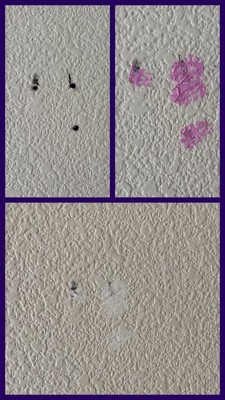 [This review was collected as part of a promotion.] This was so easy to use! Just squeeze the tube and apply where needed. The angled applicator tip makes applying the spackle easy and mess free. I like how it goes on pink so you can see what you are doing, and then dries white. After I filled the holes, I had trouble finding them once they dried.