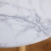 They top looks like real marble, although it's a type of glossy peel & stick. They look great, in front of loveseat 45" long, and I'm pleased with them. Worth the price, but I wouldn't put anything hot on it