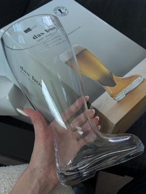 [This review was collected as part of a promotion.] A very original and fun beer glass! Beer looks great in it, especially at parties — the boot shape always gets a smile. It’s stable, easy to hold, and holds exactly one liter as advertised. The only downside is the glass is quite thick, which makes it a bit heavier than expected and causes the beer to warm up faster in your hand. But overall, it's a great gift and a fun home accessory!