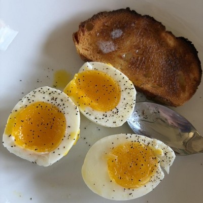 boiled eggs - so nice theres an alarm as well. the eggs come out perfectly and the shells fall off nicely.