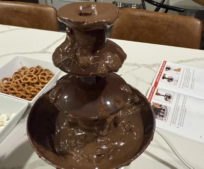 [This review was collected as part of a promotion.] This fountain is so chic once you get the hang of it. Chocolate prep is key and might take a couple tries but once you get going, it’s so fun to use. Handles a good amount for a medium party and holds up well