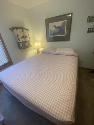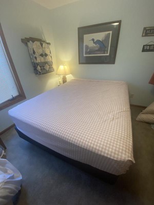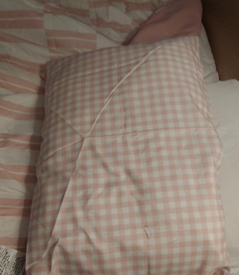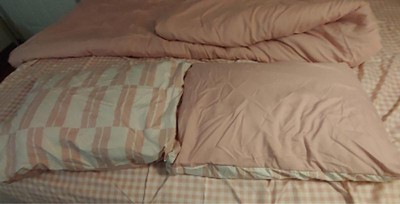 This is a nice bed set. I like the soft pink & white colors, along with the different patterns. This 7pc Queen Dash Stripe Printed Microfiber Reversible Comforter & Sheets Set Ivory/Light Pink - Room Essentials™ fit my Queen size bed & the comforter is roomy. The fabric of all of the pieces feels soft & has a smooth brush to it. The pillow cases & sheets have a cute gingham pattern, & the pillow shams & comforter have the dash stipe pattern & are pink on the other side. The comforter can be displayed with the pattern or the solid color. It is comfortable & warm, but not too bulky. The sheets & pillowcases are lightweight. This set brightens up my room & gives a touch of fun femininity. Overall, it feels well made.