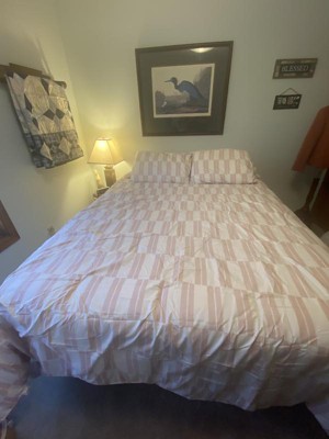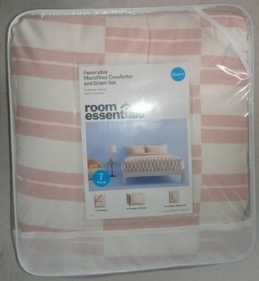 7pc Queen Dash Stripe Printed Microfiber Reversible Comforter & Sheets Set Ivory/Light Pink - Room Essentials™ is an amazing set for my bedroom. The comforter is so soft and fluffy, I never want to get out of bed. The sheets & pillow cases are smooth like silk and very comfortable. I really love the colors and the patterns.
