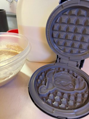 [This review was collected as part of a promotion.] This mini waffle make is so perfect! We are big stitch fans in our household! The waffle maker is light and sturdy very well made. Has a light to know when it’s done heating up to help you not over cook your waffles. Honestly this would be a great gift for a family.
