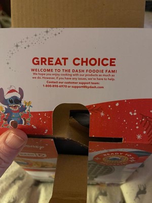 - Includes: Disney | Dash Stitch Santa Mini Waffle Maker and Recipe Guide