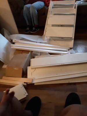 [This review was collected as part of a promotion.] I really love this dresser. It's nice big and white. I love the Deep big 3 drawers that come with it. Is very nice spacious. I love the little clear diamond looking knobs that comes with it. It's easy to open. It came in pieces you had to put it together. I love that the directions was easy for you to understand and it shows pictures so that you know exactly what you're doing. The only problem I had was at the end when I'm trying to put the drawers in with the small screws my fingernails we're a little too long. So it made it hard for me to try to get it in there right and one of the pieces was kind of cracked. But other than that it was very easy to put together and I love the outcome. Great product!!!!!!!