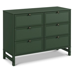 Complete your nursery's elegant ensemble with the Margot 6-Drawer Dresser, a harmonious companion to the Margot Crib. With its clean lines and refined details, adorned with exquisite pressed cane accents that exude sophistication and charm, this dresser offers both style and functionality. Its generous storage space provides ample room for organizing your baby's essentials, while the smooth-gliding drawers ensure effortless access to everything you need. The Margot Dresser not only adds a touch of sophistication to your nursery but also offers practicality that simplifies your daily routines.