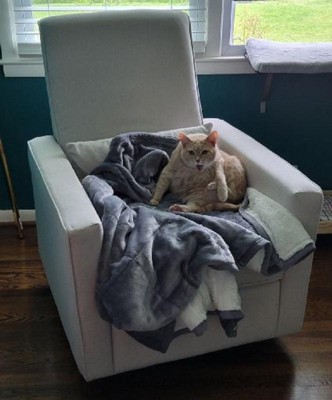 We really really love this chair in our nursery!! It’s super comfortable, stylish, and the rocking/reclining is great!! Only small issue is it makes a loud click when you push the recliner leg rest in, but besides that I really recommend this chair.