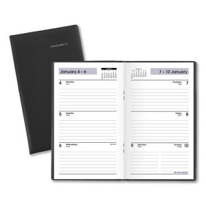 Soft vinyl cover and a compact design; plan your week your way with open scheduling. One week per two-page spread; ruled block-style for open scheduling; current and future months reference. High-quality paper with superior ink bleed resistance. Dated: Yes; Academic Year: No; Calendar Format: Weekly; Calendar Spread Format: One Week per Two-Page Spread.