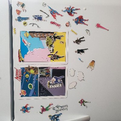 It's a bird... it's a plane... it's Superman in the nick of time to save the city of Metropolis! This magnetic play set features magnets of Superman and his most memorable villains and allies. Includes dozens of pieces for nearly limitless options. Each set promises hours of enjoyment on your refrigerator. Includes two sheets of magnets, each measuring approximately 7.5" x 12". Makes a great gift!